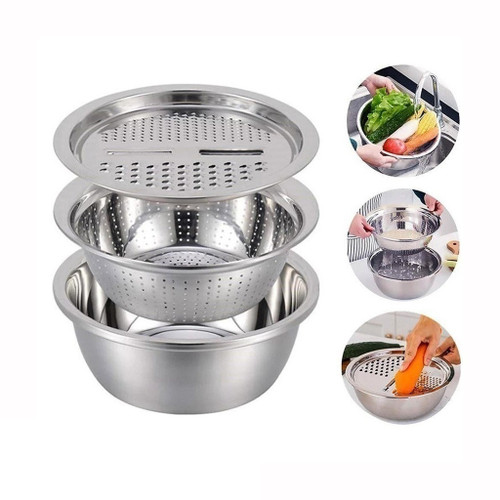 ست سرویس صافی ، لگن و رنده استیل 3 پارچه اندازه 26 سانتناموجود
