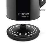 ظرفیت کتری برقی بوش مدل TWK3P423 معادل 1/7 لیتر و با توان مصرفی 2400 وات با صرف انرژی بسیار کم درکوتاهترین زمان آب را جوش می آورد .رنگ بدنه ی کتری برقی بوش مدل TWK3P423مشکی میباشد که جزو زیباترین کتری برقی های شرکت بوش می باشد.روی دسته ی کتری برقیبوش مدل TWK3P423دکمه ای قرار دارد که با کوچکترین لمس درب آن براحتی باز می شود.پایه ی چرخشی 360 درجه کتری این امکان را فراهم می آورد تا افراد چپ دست نیزازآن براحتی استفاده کنند.روی بدنه یآن نیز نشانگرمندرج ظرفیت آب وجود داردکه میزان آب داخل کتری را می توان مشاهده کرد.سیستم ایمنی دستگاه چند کار انجام می دهد. یک اینکه بعد از به جوش آمدن کامل آب به طور خودکار خاموش میشود.دوم اینکه اگر دستگاه بی آب ماند باز به طور خودکار خاموش می شود.زیز پایه ی کتری برقی بوش مدل TWK3P423 نیز مکانی تعبیع شده است تا سیم دستگاه به آسانی در آن قرار بگیرد.