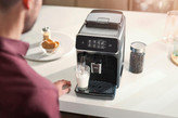 ماشین های فوق اتوماتیک مخصوصاً با کیفیت بالا، معمولاً بسیار پیچیده ترند. اما این محصول فیلیپس کاملا استثنایی بوده و دارای کاربری بسیار آسانی می باشد.نمایندگی فیلیپس در این مدل صفحه نمایشی در قسمت جلوی دستگاه قرار گرفته تا دسترسی و اعمال تنظیمات آسانتر گردد. عطر و طعم مقاومت ناپذیر قهوه از دانه های تازه فقط یک لمس فاصله دارد. صفحه نمایش لمسی دیجیتالی این را امکان می دهد تا بتوان به راحتی قهوه مورد علاقه را انتخاب نمود. در ضمن، قدرت و مقدار نوشیدنی از طریق My Coffee Choice در سه حالت قابل تنظیم می باشد.