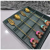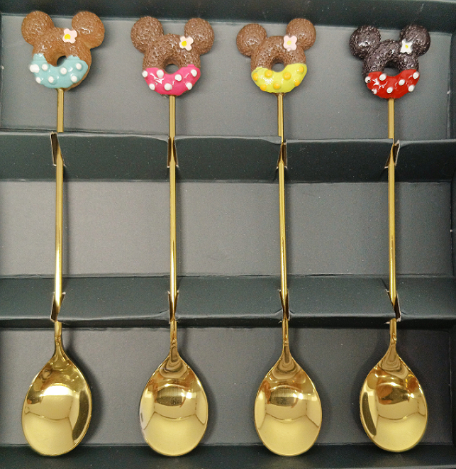 قاشق دسرخوری طلایی طرح دونات بسته 4 عددی
