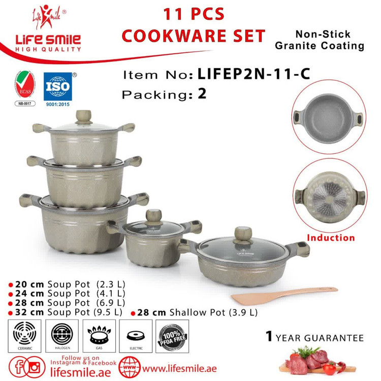 سرویس قابلمه گرانیتی ۲۵ پارچه لایف اسمایل دسته سیلیکون