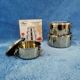 ظرف غذای استیل در سه سایز کوچک،متوسط و بزرگ با سایز های 16،14،12 سانتی متر عرضه شده.که از هر کدام به صورت جداگانه میتوان استفاده کرد.از دیگر مزایای این محصول استیل نگیر(آهن ربا نگیر) بودن آن است. بنابراین به هیچ وجه سیاه نشده و زنگ نمیزند.همچنین میتوان این محصول را جهت داغ کردن انواع موادغذایی روی شعله گاز قرار داد.