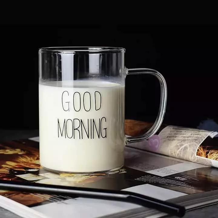 لیوان پیرکس شعله مستقیم طرح گود مورنینگ با حجم 460میلی لیتر