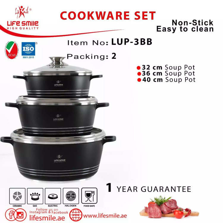 سر یس قابلمه 6 پارچه نانو سرامیک لایف اسمایل سایز 40 -36-32