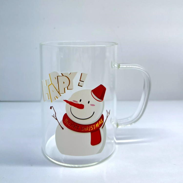 لیوان پیرکس 450 میل دسته دار طرح آدم برفی