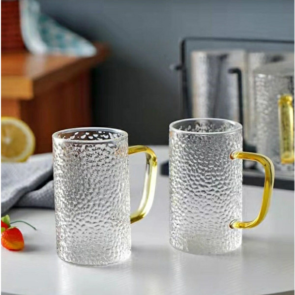 ماگ و لیوان پیرکس برفی دسته طلایی