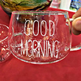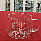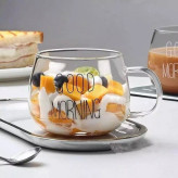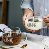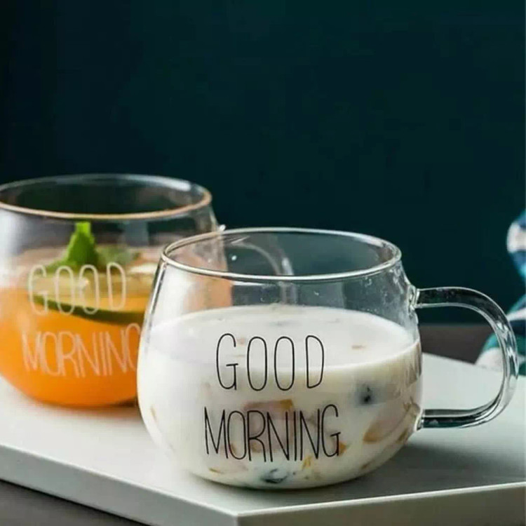 لیوان پیرکس دسته دار طرح گود مورنینگ 350 میلی