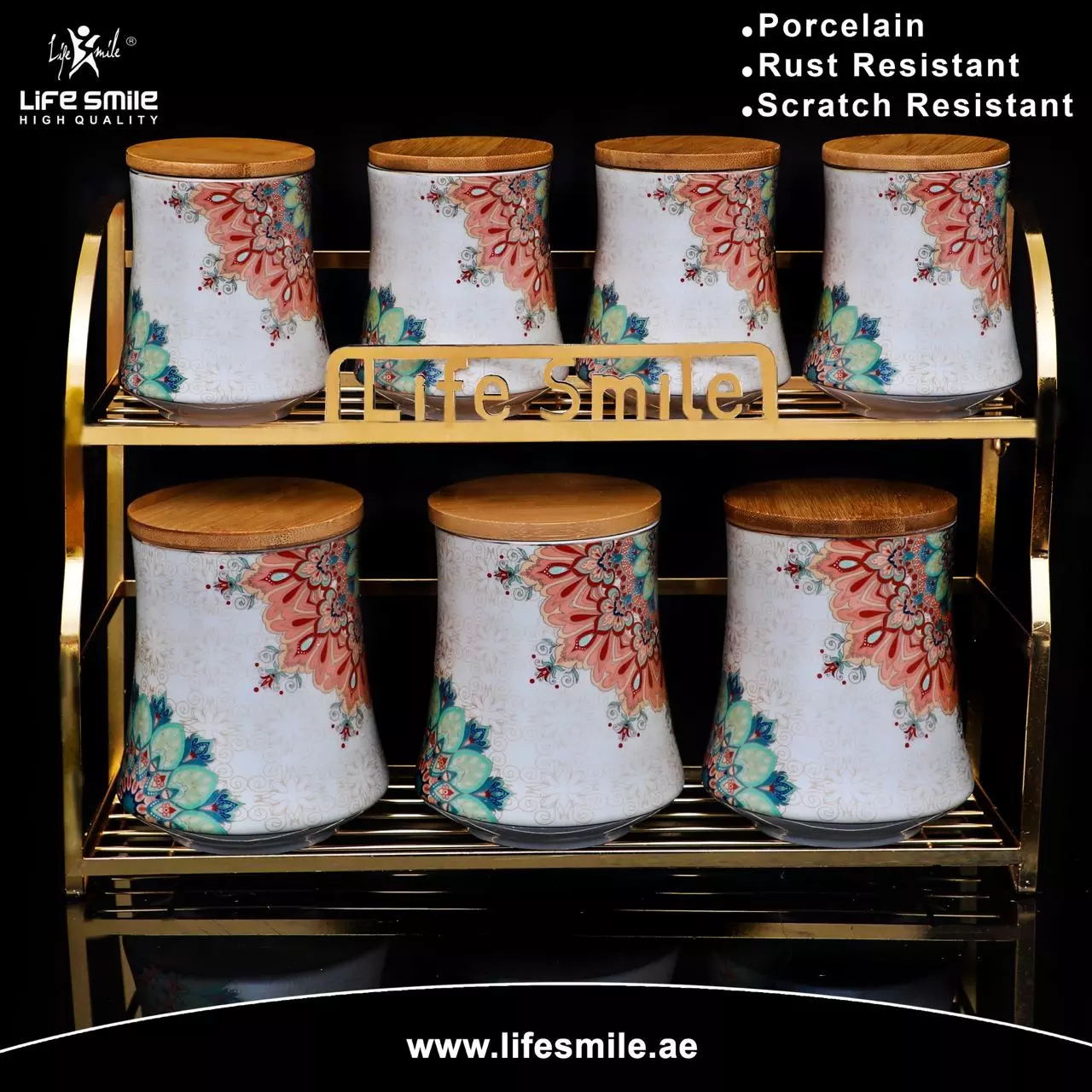 پاسماوری ۷ پارچه لایف اسمایل طرح گل سرامیکی درب بامبو همراه با واشر سیلیکونی قفل هوا بسیار با کیفیت