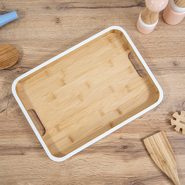 سینی مستطیل بامبو به ابعاد 35*25 سانتی متر با وزن سبکی که نسبت به چوب دارد از مقاومت بالایی برخوردار بوده . با طراحی جذاب و کاربردی با لبه ۳ سانتی متر و دسته های داخلی امکان حمل راحتی دارد .