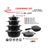 سرویس قابلمه سرامیکی 12 پارچه لایف اسمایل مدل BB-12SET شامل 4 قابلمه در سایزهای 20، 24، 28 و 32 سانتی متر وهمچنین 2 عدد ماهیتابه که یکی از آنها ماهیتابه ی دو طرفه یا در اصطلاح رژیمی به سایز 32 سانتی متر و دیگری ماهیتابه ی معمولی به سایز 28 سانتی مترمی باشد. جنس بدنه ی این قابلمه ها از آلومینیوم ریخته گری است و پوشش داخلی آنها از جنس سرامیکی نچسب با دوام بالا و بسیار مقاوم می باشند.