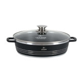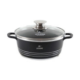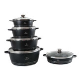 این سرویس قابلمه از جنس آلومینیوم باکیفیت بوده که دارای یک پوشش ضدخش و درخشان سرامیکی به رنگ مشکی میباشد. از خصوصیات قابلمه و تابه های این سرویس میتوان به ضدخش بودن و قابلیت شعله پخش کن برای پخت بهتر و سریعتر مواد غذایی اشاره کرد. این سرویس قابلمه 10 پارچه دارای 4 عدد قابلمه با سایز های 20, 24, 28, 32 سانتیمتر و یک عدد ماهیتابه معمولی با سایز 28 میباشد. درب این قابلمه و تابه ها از جنس شیشه پیرکس مقاوم بوده و تا 240 درجه سانتیگراد را تحمل میکند و همچنین مقاومت بالایی در برابر فشار و ضربه از خود نشان میدهد. این قابلمه ها و تابه قابلیت استفاده در مایکروویو را نیز دارند.